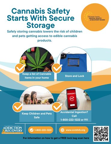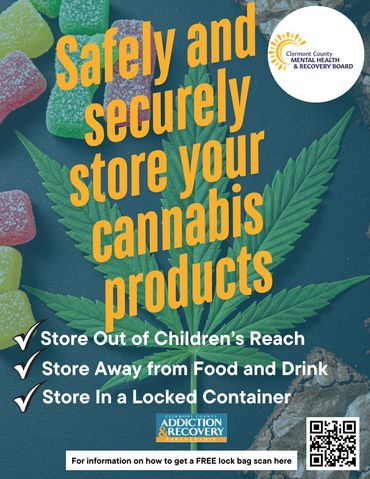 Store medications or cannabis products in locking storage bags that can be obtained for FREE at the Clermont County Mental Health and Recovery Board or the Goshen Township Police Department